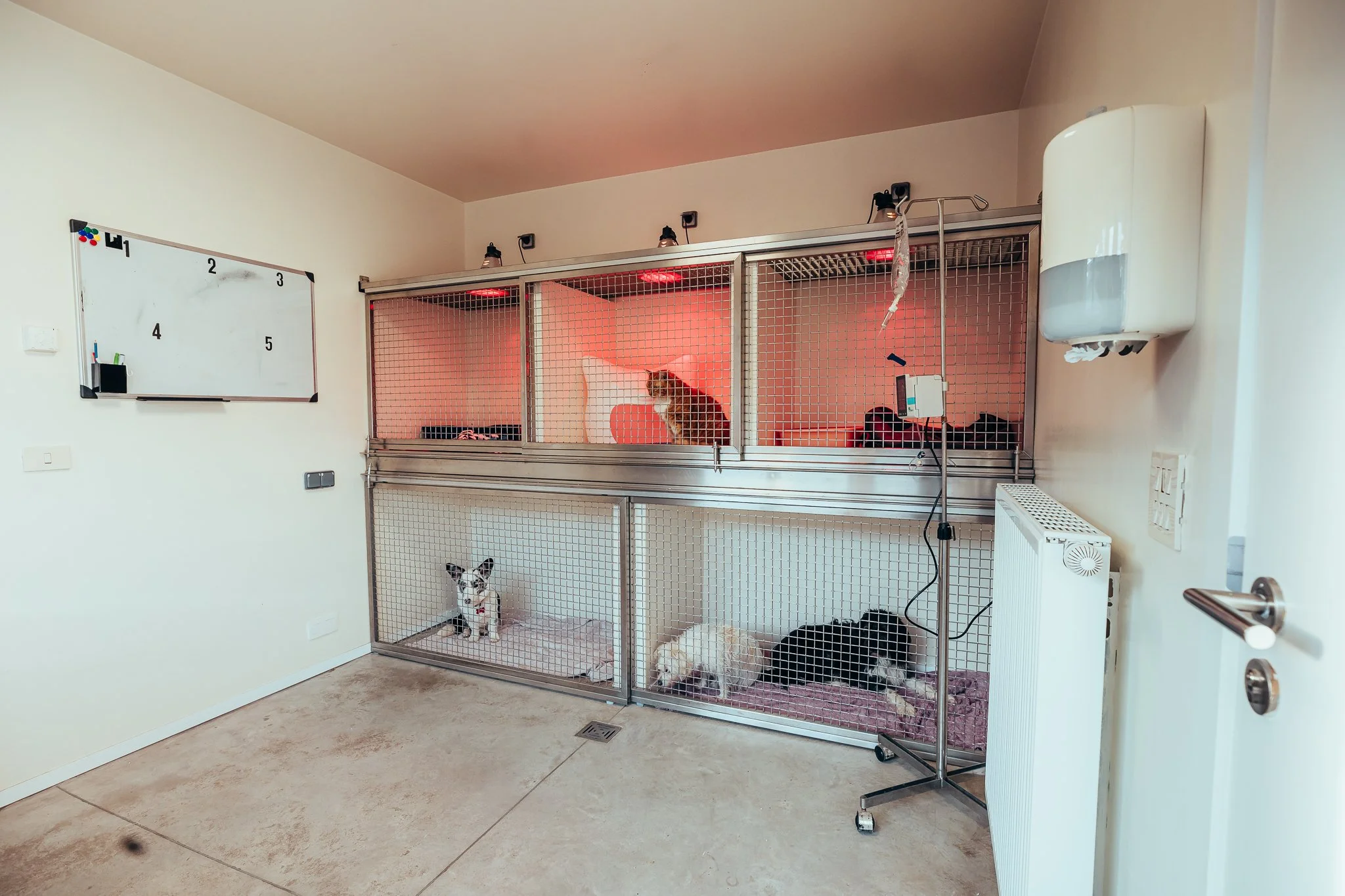 Soms is het nodig dat uw dier bij ons verblijft na een operatie of voor verdere behandeling. Onze hospitalisatie is voorzien van zachte dekentjes, vloerverwarming en infraroodlampen zodat uw huisdier zich veilig en op zijn gemak voelt.